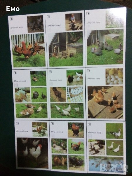 2. Комплект (снимки от 8 до 12) от ефектна обложка (с подробно изложение и информация за поредицата - на снимка №9) и 18 бр. картички на птици за домашно отглеждане и съответните храни за тях. Всяка една от тях има описание на видовете пернати и храните, номерирани според разположение им - на гърба, като за пример как изглеждат се вижда на снимка №12. Цена: 40 лв.