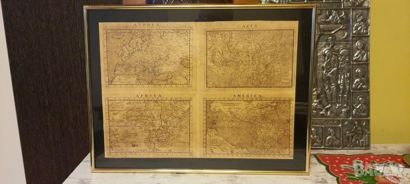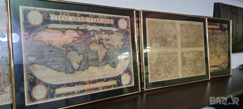 Картини Стари геогр.карти 5 броя.Картините са с размери 30х40см.Изготвени са в един стил и с еднакви материали за да могат да се използват за цялостно декориране на офис или друго помещение.