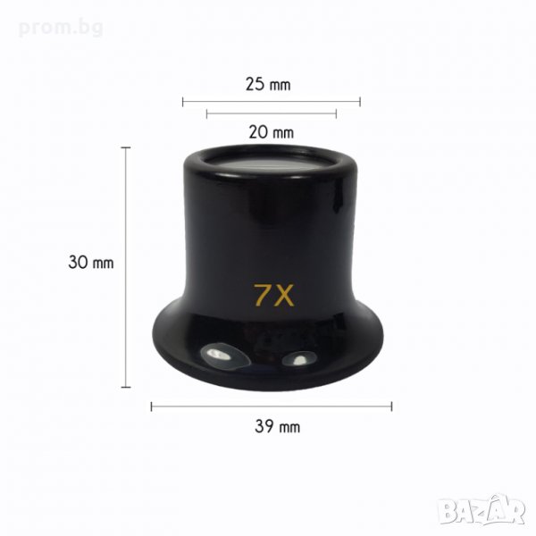 часовникарски лупи, окуляри, бижутерска лупа, леща, окуляр, ново, внос от Белгия. Корпус от черна издръжлива пластмаса, стъклена леща. Диаметър на стъклената леща 20 мм, устойчива на надраскване; Диаметър в горната част: 25 мм; Диаметър на долната част: 39 мм; Обща височина на лупата: 30 мм.