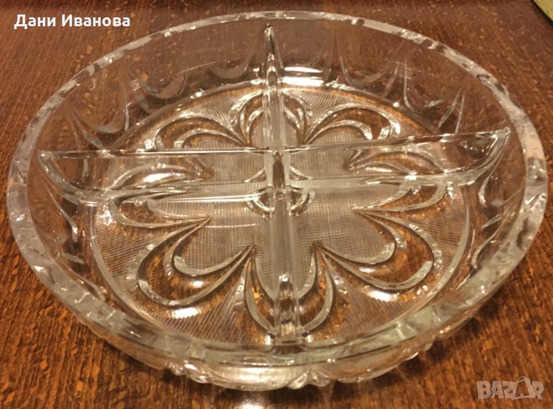Кръгла кристална ордьовърна чиния с 4 отделения → Обява 31377922