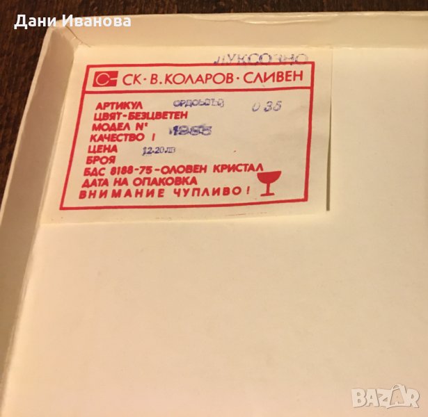 от вътрешната страна кутията има етикет на производитела СК "Васил Коларов" - Сливен