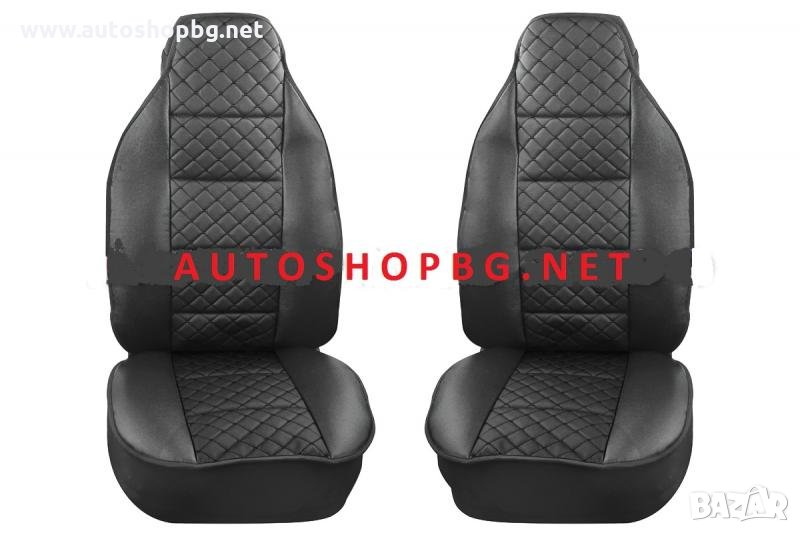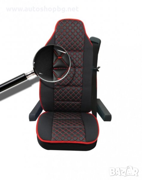 Комплект Универсална Тапицерия Тип Масажор 1+1 за Предни Седалки Лукс Черна със Червен шев, Еко Кожа