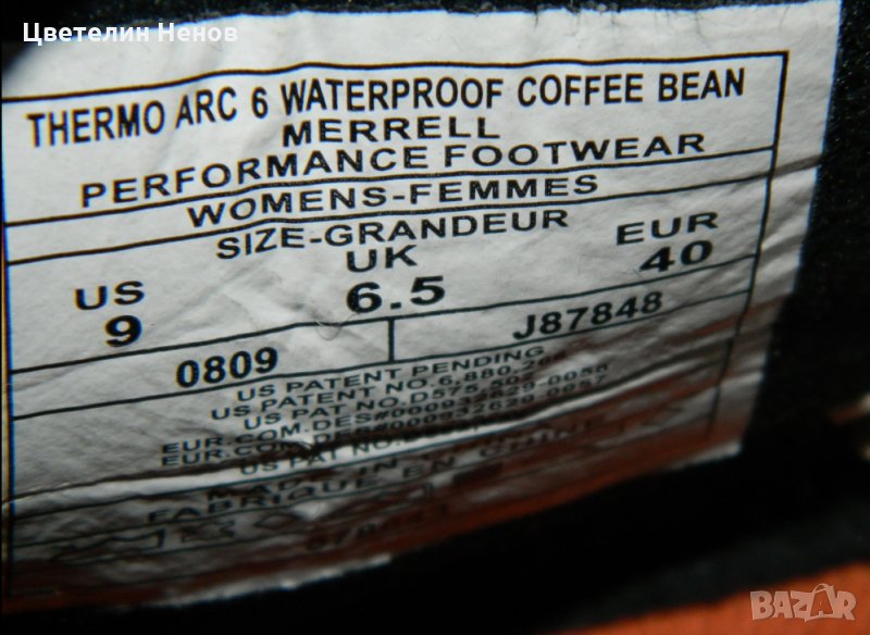 Моделът на обувка Merrell Thermo Arc 6, който е оценен от жени, които обичат кафявите тонове, е правилният избор за тези, които се интересуват от спортове на открито. Моделът, който едновременно изглежда добре и държи топло с вълнения си интериор, е оживен с черния си пръст и пета. Подчертавайки качеството си с логото на марката отстрани, обувката Merrell осигурява регулируемост със своята структура на връзване. Технически свойства: Aegis Microbe Shield Antibacterial Inner Lining; предотвратява образуването на бактерии и миризма. Основа Vibram; Въпреки че обещава комфорт със своята лека и гъвкава структура, той осигурява максимална адхезия върху почвата благодарение на здравата си структура. Ортолитна технология; Благодарение на дихателната си структура, той предотвратява образуването на бактерии и гъбички. Технология Q Форма; Това е технология, съвместима с дамските стилове на ходене. Тя ви позволява да прекарате приятен ден, като осигурявате комфорт на всяка стъпка. Вътрешна облицовка Primaloft; Притежава водоотблъскване и осигурява висока изолация. Термална подложка