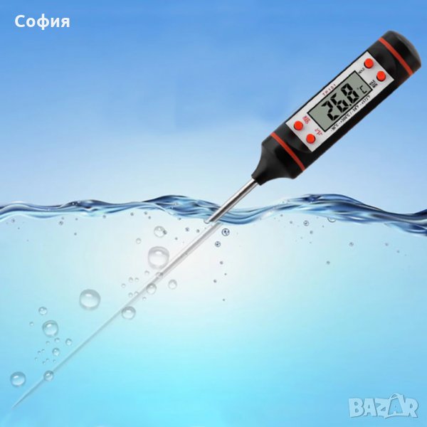 Висококачествен термометър с игла-сонда за хранителни продукти, ястия и течности с дигитален LCD дисплей. Благодарение на този термометър, може да проверите и да се уверите, че храната винаги е добре сварена и изпечена. Идеален инструмент, полезен при готвене за тестване отвътре или отвън, за проверка дали температурата в съответния хранителен продукт или течност е подходяща! Изключително лесен за употреба с възможност за показване на температурата във Фаренхайт и Целзий.