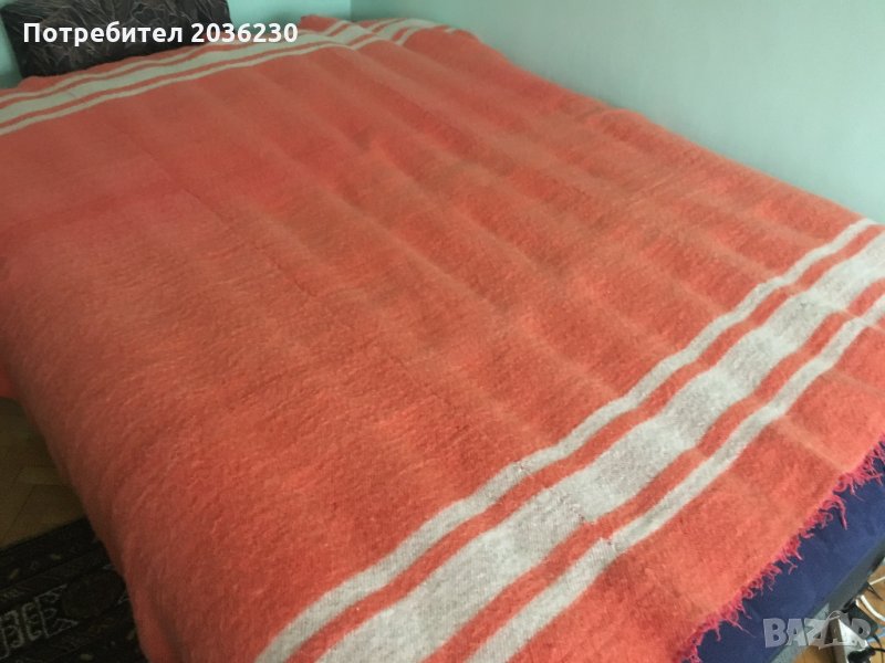 Вълнено одеало в приятен розово-оранжев цвят, вълна. Размери 194/195 см. Може да се използва и за килим, за декорация на вилата или ресторант в битов стил. Вълнен губер, вишнево червен, размери 160/210. Предаването е лично.