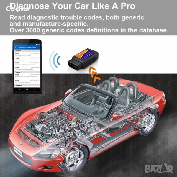 Устройство за автодиагностика за вашия автомобил, с което може да правите диагностика на всички автомобили съвместими със стандарта OBD II. Може да откривате грешки и съответно да ги почиствате. Просто трябва да го включите в OBD буксата и да се вържете чрез блутут като предварително инсталирате софтуера на вашия телефон, лаптоп или таблет. Дискът със софтуера за диагностика е включен в пакета!