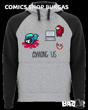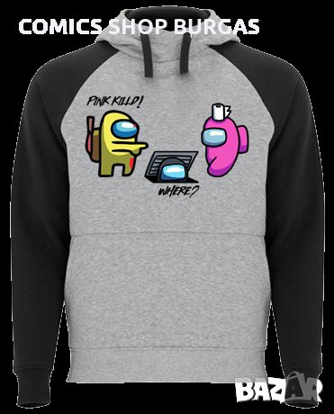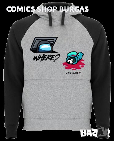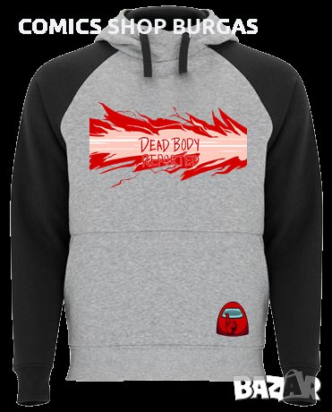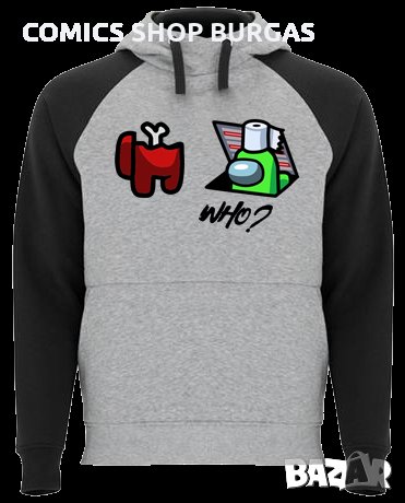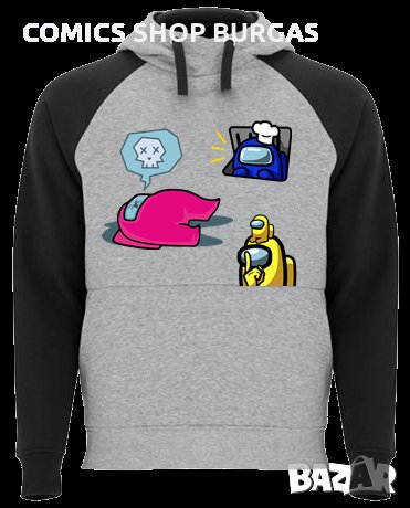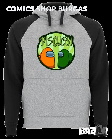 Двуцветен унисекс суичър подходящ за мъже и жени. Качулка с кръстосана яка, контрастна възка и метални капси. Ръкавите на суитчъра са контрастни. Джоб в стил кенгуру и широк ластик на талията и маншетите.