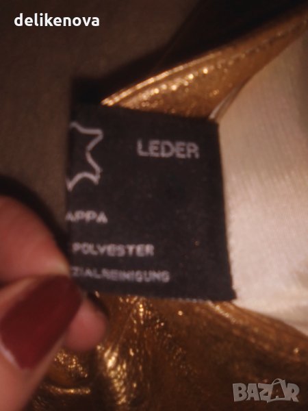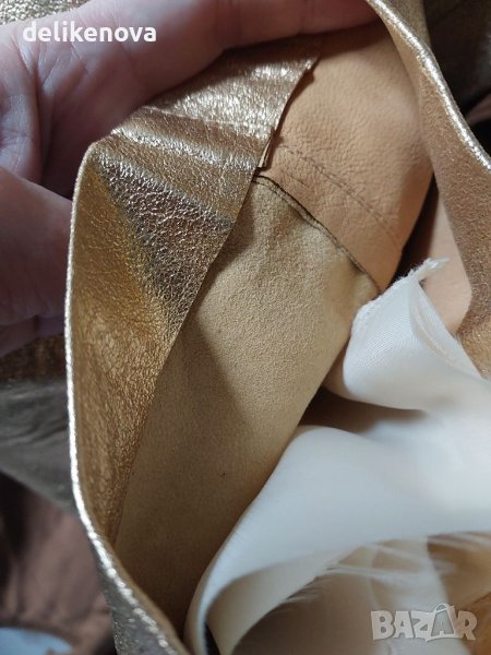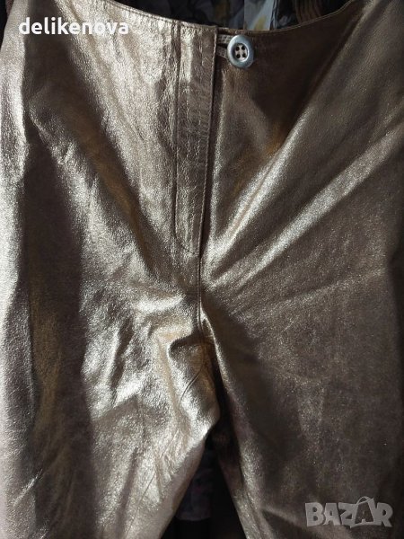 100% Кожа. Жесток италиански златен/златист панталон. Размер 38-40 → Обява 31392844