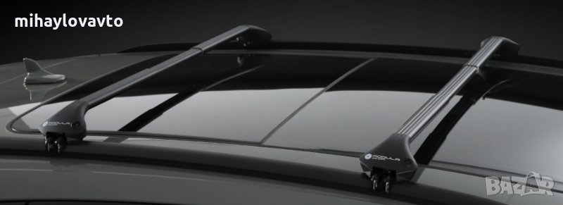 Напречни греди със заключване. Багажник за покрива алуминиев, черен. За автомобили с интегрирани релси на покрива.