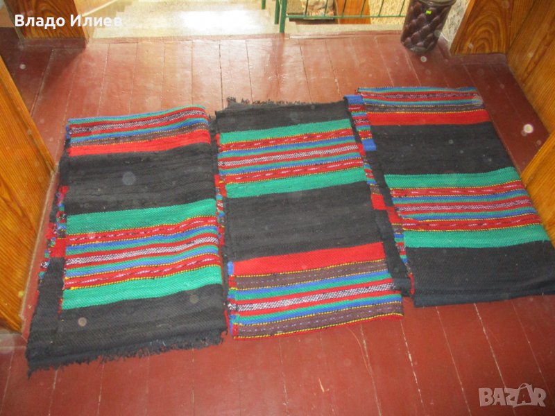 Чергите са неизползвани изобщо,с красиви ярки цветове.4 от тях са еднакви/първата снимка/-с размер 317 /115 сантиметра.На втората снимка са посочени 2 еднакви с размер 406/ 115 см .На третата снимка е единична черга с размери 405/114 см .