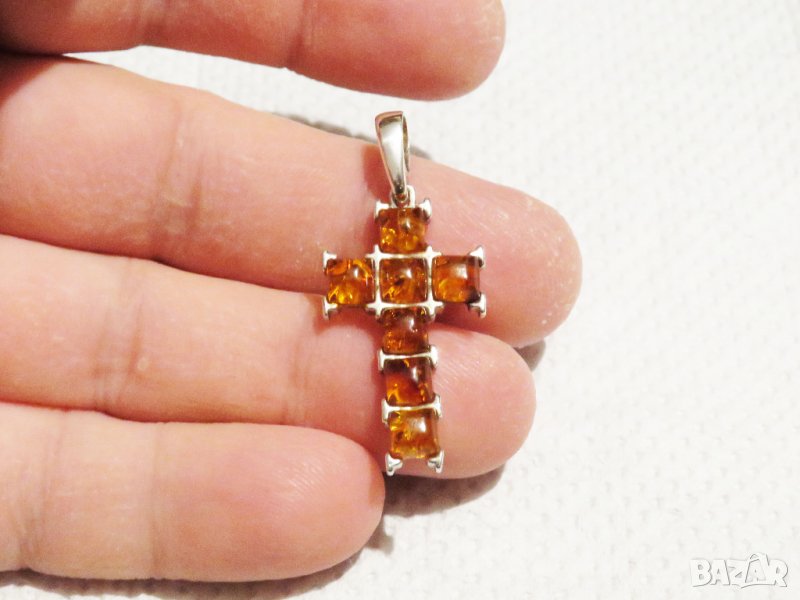 сребърно кръстче с балтийски кехлибар и сребърно синджирче сребро