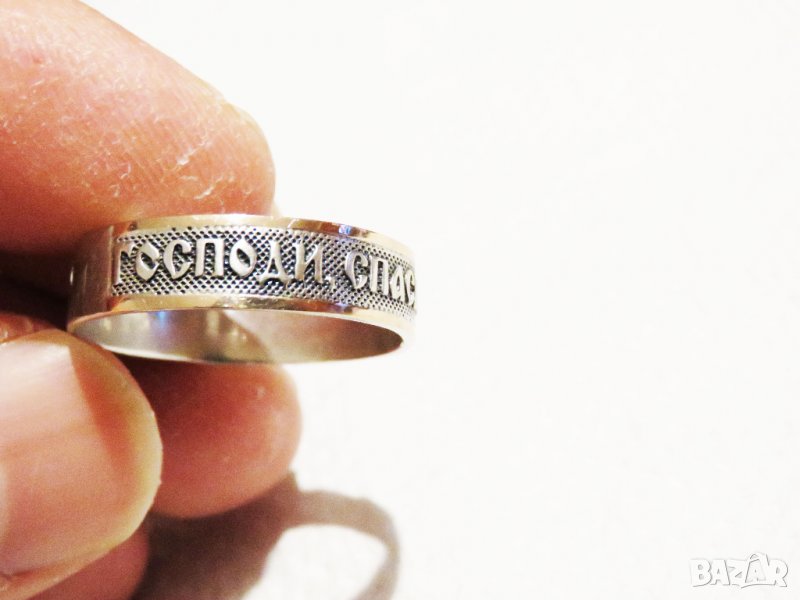 Стариннен сребърен пръстен с думи към Исус в релефен надпис " Господи, спаси и сохрани мя .- за да имате винаги връзка с бога и да ви пази и закриля нашия спасител Исус .