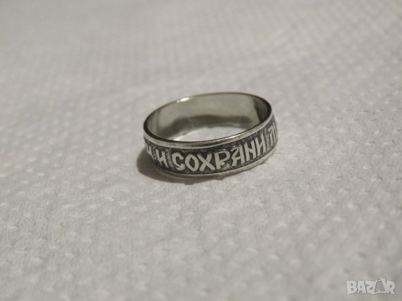 Стариннен дамски сребърен пръстен с думи към Исус в релефен надпис " Господи, спаси и сохрани мя .-