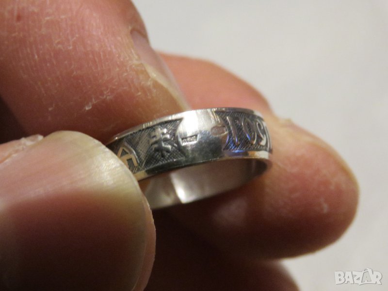 Стариннен дамски сребърен пръстен с думи към Исус в релефен надпис " Господи, спаси и сохрани мя .- за да имате винаги връзка с бога и да ви пази и закриля нашия спасител Исус .