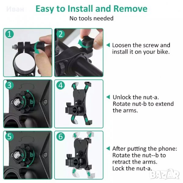Цена за 1 брой стойка за смартфон за монтаж на велосипед или гръб на седалка за кола - 16 лв.