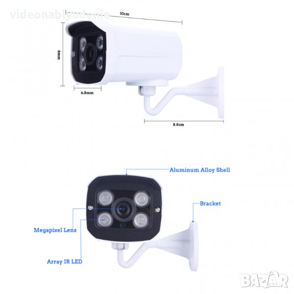 Камерите са по избор - тип булет или куполна. И двата модела са метални - водоуйстойчиви. С изключително лесна инсталация, чрез приложената инструкция на Български език за първоначалното конфигуриране на камерата и някои други особенности. Всеки обикновен потребител може се справи сам с инсталирането на камерите!