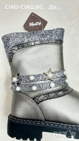 №27-№32, Ботушки за момиче WEESTEP сиво-сребристи с перлички и звездички