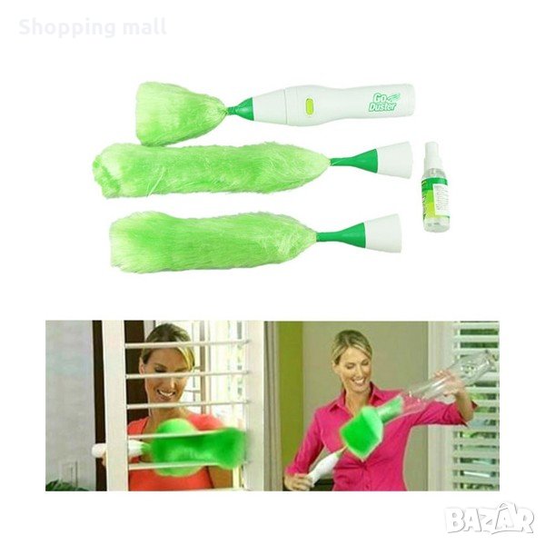 Go Duster влива нов живот в домакинската ти работа! Той успешно почиства деликатните фигурки, електрониката, рамките за снимки, щорите, лампите, дървената мебел, растенията и др. Подходящ е за всяко кътче в твоя дом. Дори трудно достъпните места вече не са проблем — само с натискането на едно копче прахът изчезва!