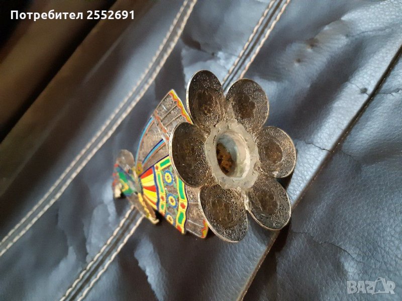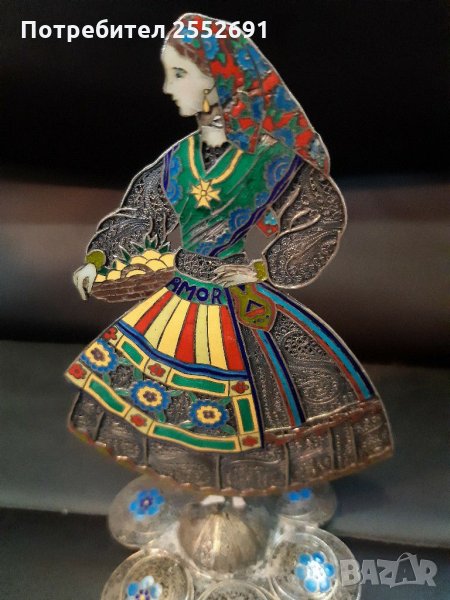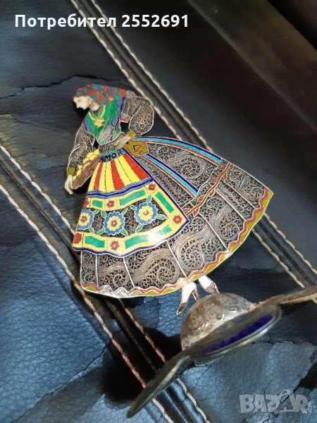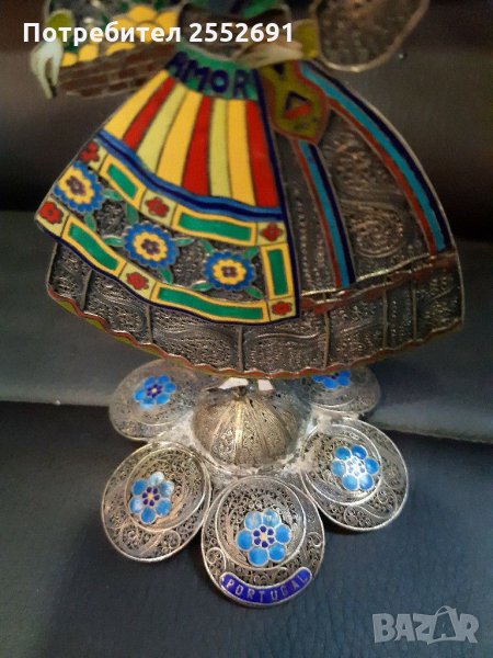 Ръчно изработена АЖУРНА фигура от СРЕБРО С ЕМАИЛ. Наличие на фирмен знак " TOPAZIO" PORTUGAL. Височина 12см. Ширина-7см. Тегло 48гр.