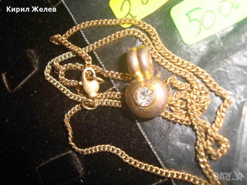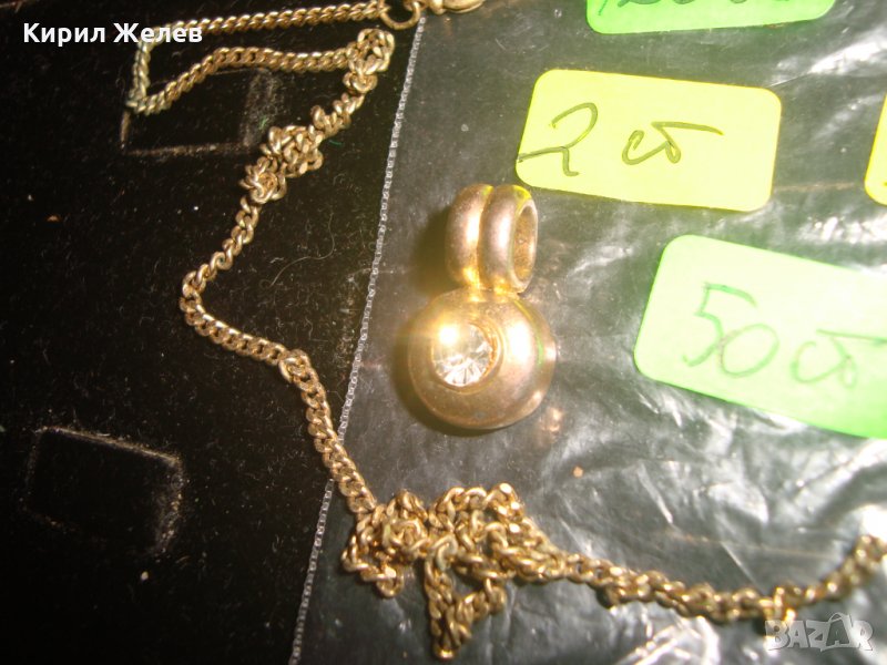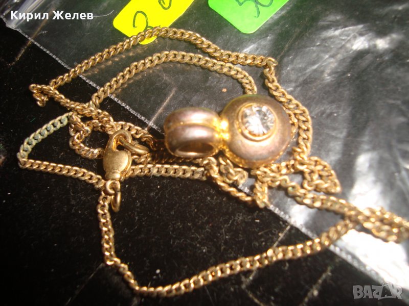ПОЗЛАТЕН МЕДЕН МЕДАЛЬОН с ГОЛЯМ ФАСЕТИРАН ЕЛМАЗ ДИАМАНТ ЦИРКОН и ДЕБЕЛО ПОЗЛАТЕНА ВЕРИЖКА 12665