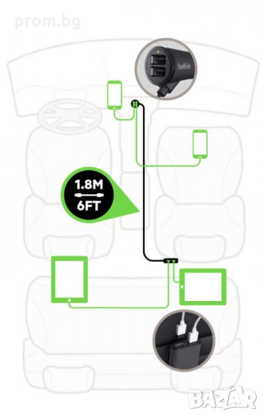 Belkin авто зарядно с 4 USB порта за лек автомобил, Германия → Обява 31430156