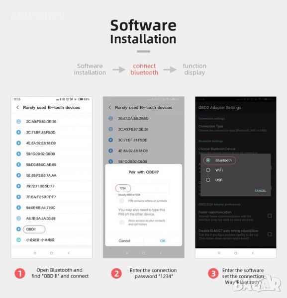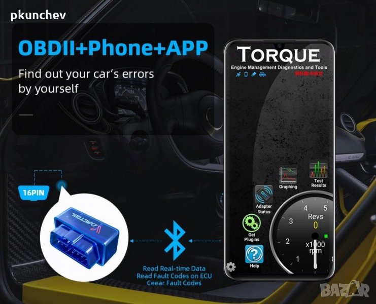 OBD2 bluetooth автомобилен скенер → Обява 31432337