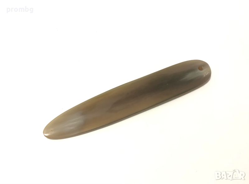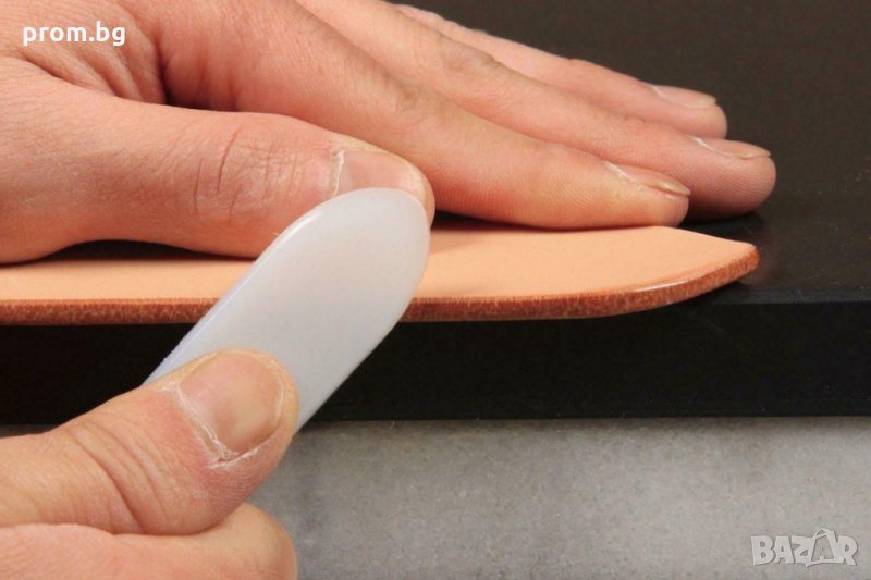 - 14,32 евро/28 лв - първи модел- висококачествен кожарски инструмент от естествена кост, с права форма и яйцевиден овал. Произведено в Италия, високо качество. Дължина 15,3 см, ширина в най-широката част 3 см. Цвят: многоцветна (тъмна).