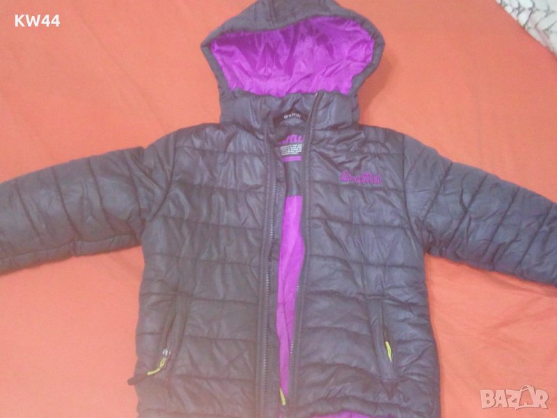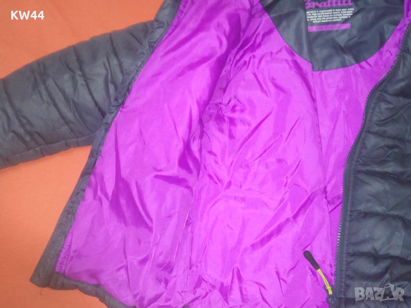 Марково яке. Сиво с лилава подплата. Единствена забележка има малка дупчица на качулката. Качулката се сваля.