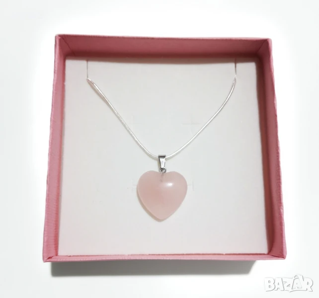Ново Колие Сърце + Кутийка Розов кварц Подарък за Свети Валентин за момиче за жена