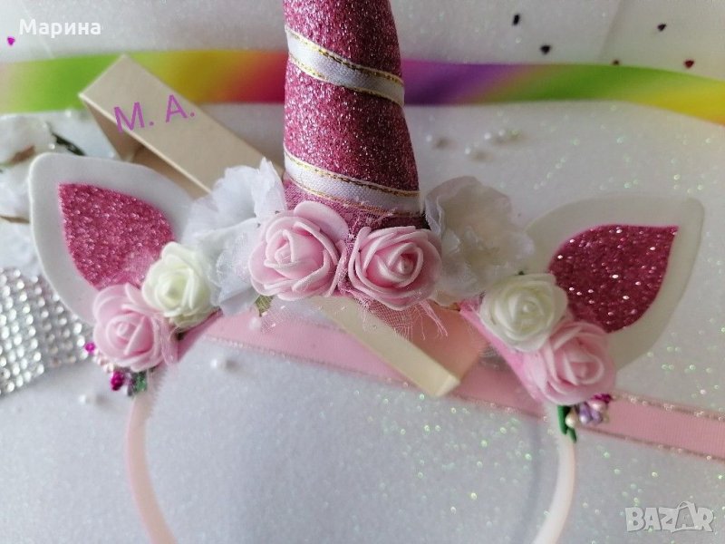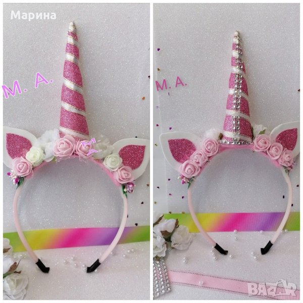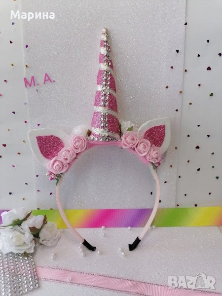 Диадема на еднорог с рог и уши в розово. → Обява 31449120