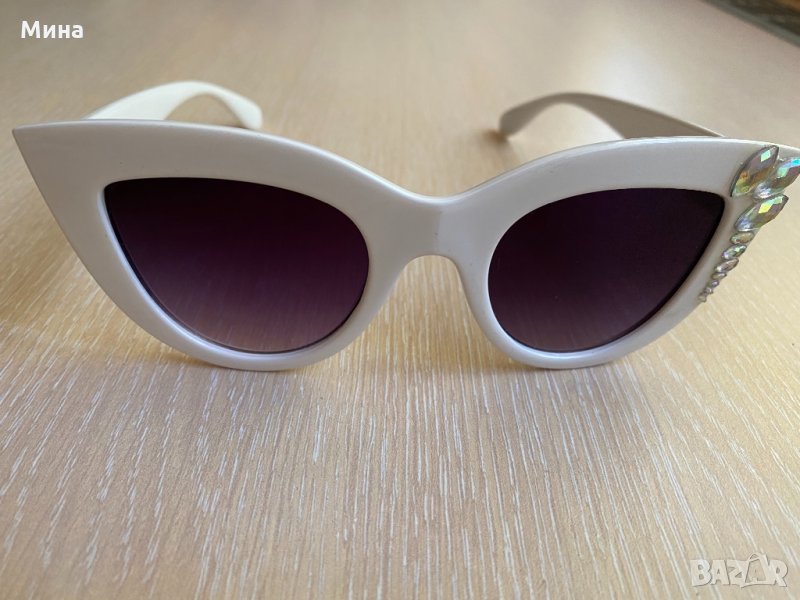 Дамски слънчеви очила с бяла рамка, с UV защита. Ръчна изработка с камъни Сваровски.