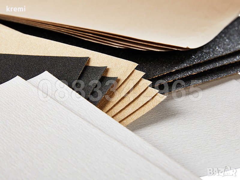 Комплект шкурки с различна едрина на зърната, подходящи както за бързо снемане на материала, така и при фино повърхностно обработване