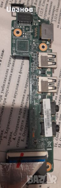 - платката с LAN порта, 2 бр. USB и жаковете за слушалки/ микрофон и лектовия кабел за нея