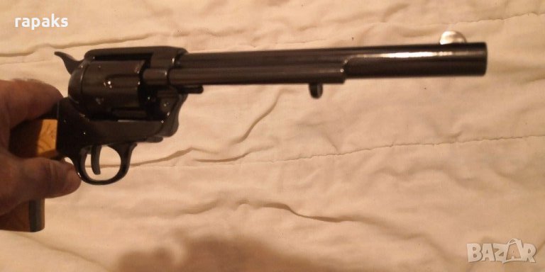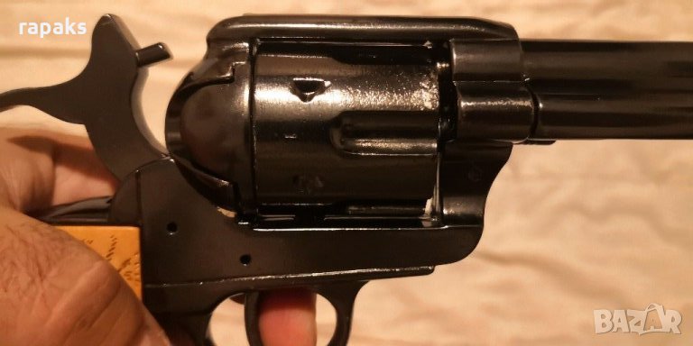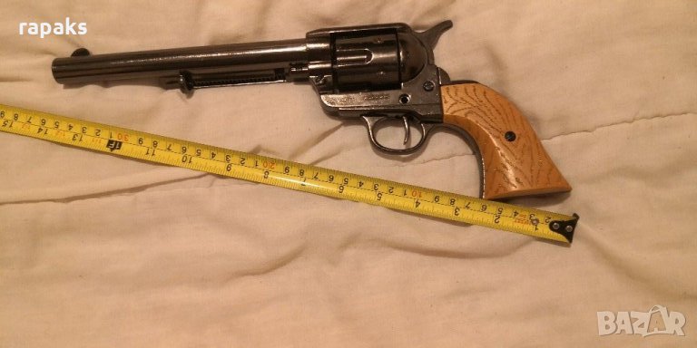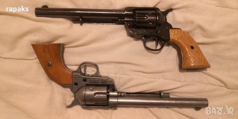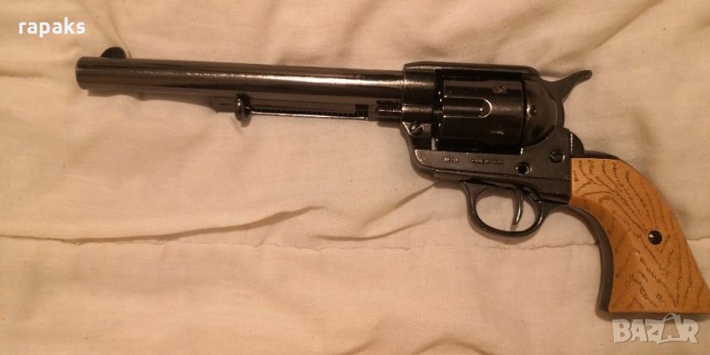 Нестреляща колекционерска реплика на емблематичният револвер Колт 45 писмейкър. За колекция, игра и украса. Масивен, красив и в перфектен вид и техническо състояние. Има го и в класическият вариант, неоксидиран. Зарежда на сингъл и щрака. Екстракторът работи. Прекрасен подарък.