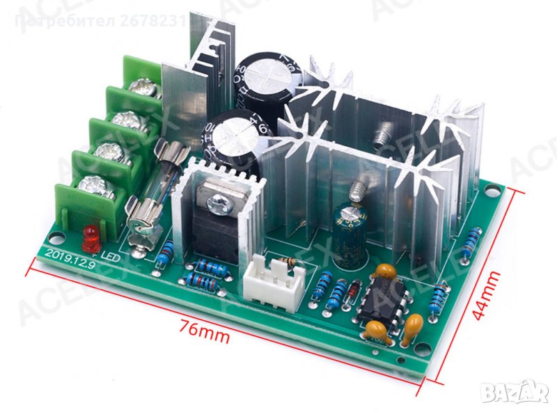 Контролира оборотите на постояннотоков двигател чрез импулсно-ширината модулация (PWM).