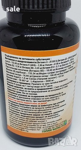Съдържание на активните субстанции :-Витамини и микроелементи:Витамин А ,Витамин Д3 ,Витамин Е ацетат ,Витамин К (МНБ),Ниацин ,Витамин В1,Витамин В2 ,Витамин В6 ,Витамин В12 ,Биотин ,Пантотенова киселина (Витамин В5) ,Фолиева киселина , Желязо (II) карбонат ,Меден сулфат пентахидрат ,Манганов оксид ,Цинков оксид ,Йод (покрит гранулиран калциев йодат), Селен (Натриев селенит) ,Бирена мая , L-Карнитин .