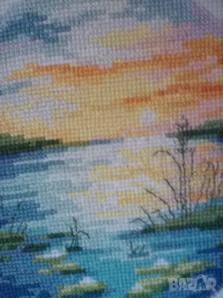 Гоблен Лято Четири сезона / summer four seasons /- ръчно бродиран , мулинета Madeira cotton threads, аида 16 к-та, рамка фервако кръг 17см