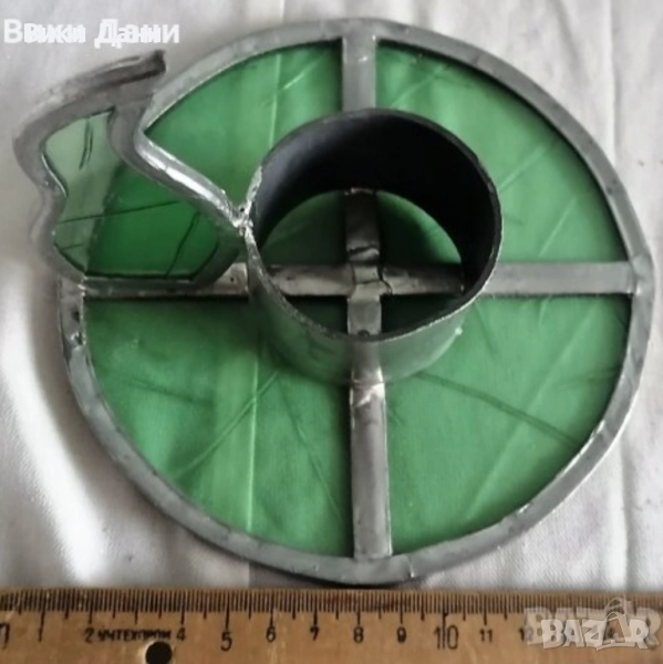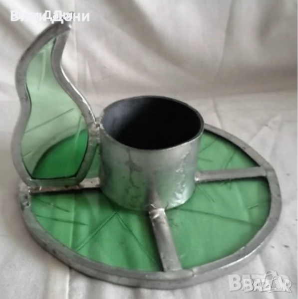 споен зелен Витраж Свещник Унiкат Франция 19 💶