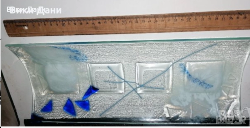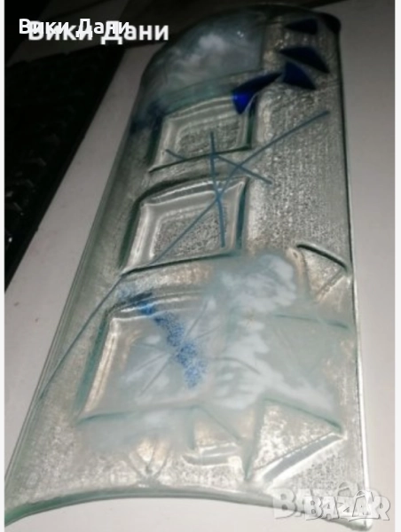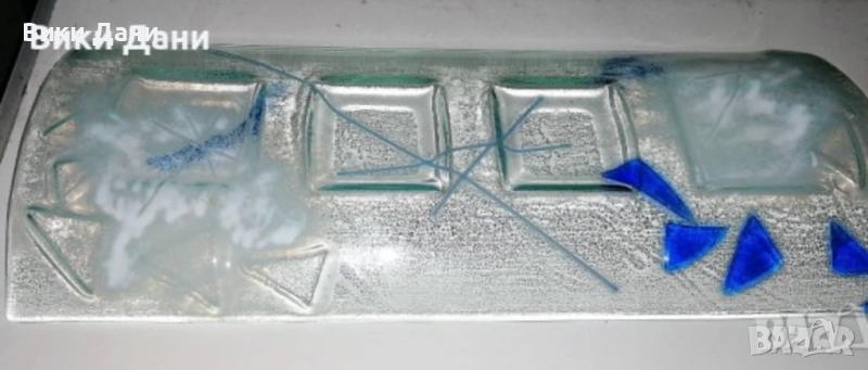 Уникат стъкло поднос фруктиера 4ка Свещник подписан 2004 14 💶