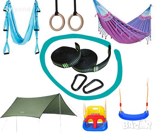 Коланите са подходящи за изключително лесно закачане и откачане - БЕЗ ВЪЗЛИ - и без провисване на всички типове хамаци. Също така и за люлки - детски, бебешки или дворни. За закачане на висящ стол или пейка. За вашата тренировка с гимнастически халки, хамак за въздушна йога, фитнес ластици или др. За опъване на тенти или сенници и за още много практични и различни идеи които имате за открито или закрито…