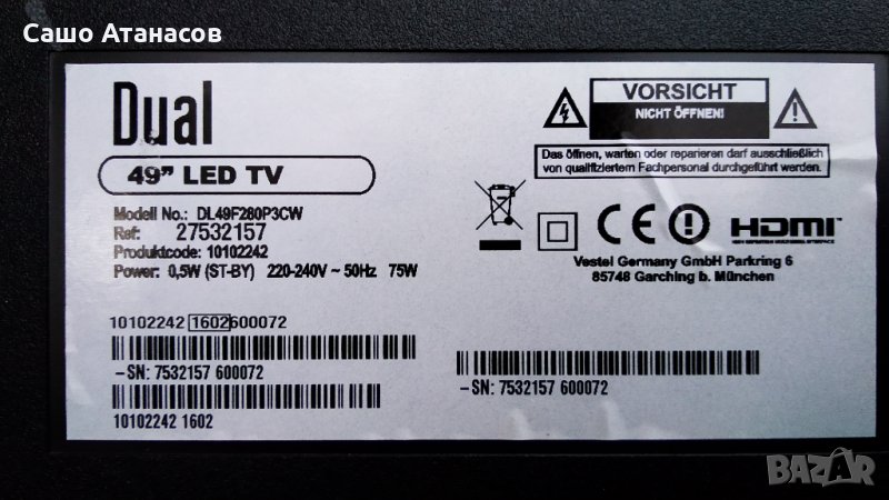 Модули от телевизор Dual DL49F280P3CW с дефектна матрица (панел VES490UNDL-2D-N11 )
