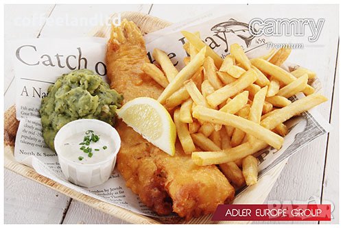 приготвени пържени картофки, лучени кръгчета, пилешки хапки, рубни пръчици или панирани
