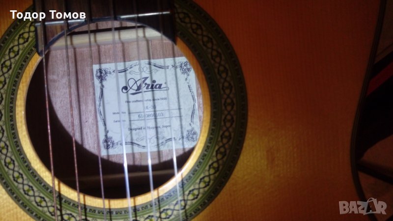 Акустична китара Aria модел К-30. Китарата е с калъф, стойка за китара, стойка за ноти, стъпенка и тунер за настройка.