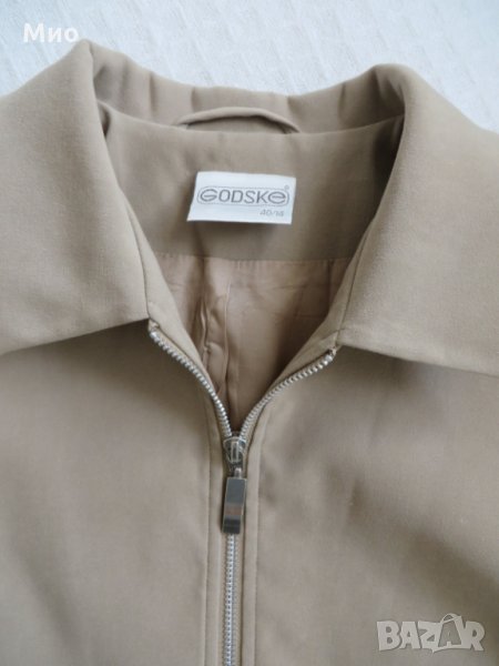 Стилно качествено яке на марката Godske. Втален силует, декоративни шевове, качествен цип YKK. Платът е много приятен на допир, със състав 97% полиестер, 3% еластан. Дължина на гърба 61,5 см, ширина на раменете 44,5 см, ширина под мишниците 56 см, дължина на ръкава 62,5 см. Без следи от употреба. Цветът е по-скоро, като на първите снимки.