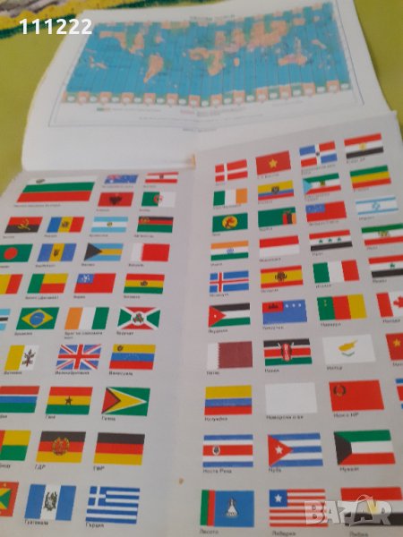 1. Стара политическа карта на света от 70-те - 80-те години на миналия век. Картата е под формата на диплянка, т.е. сгъваема с размери 12.5 см ширина и 22 см височина - в сгънато положение, а в разгънато положение - ширина 86 см и височина 66 см. Мащабът е 1:35 000 000.и включва: