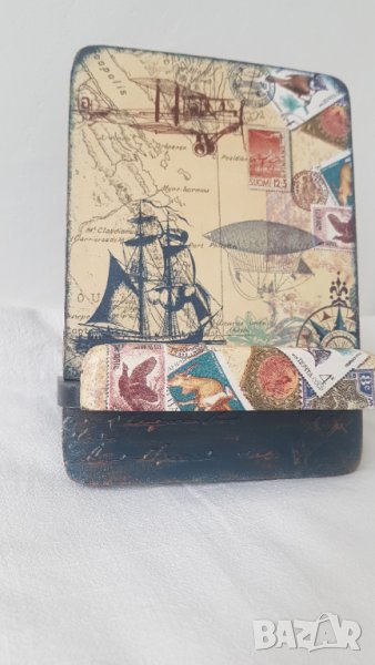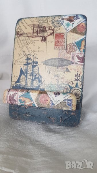 Дървена поставка за таблет, ръчно изработена с техника декупаж. Използвани са акрилни бои, лак и обемна паста за релефа. Всичко е на водна основа и е абсолютно безвредно за здравето. Поставката се разглобява лесно на две части което я прави изключително удобна и практична за пренасяне. Широчина 13 см, височина 20 см. Изработена е в един единствен брой и няма да бъде претворена в този си вид никога. Всички наши продукти са собствена продукция и са изработени в единични неповтаряеми екземпляри. Посочената цена е крайна с включен ДДС. БЕЗПЛАТНА ДОСТАВКА до офис на Еконт.