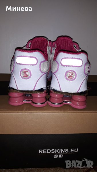 Нови оригинални дамски маратонки Nike Shox, в модерна комбинация от бяло и розово, изработени от висококачествена кожа с дишаща материя против изпотяване, със специални Shox системи на подметките за комфорт при ходене и бягане, с големи светлоотразителни системи отзад на всяка обувка. С тези модерни маратонки определено няма да останете незабелязани на вън. Номер 40 и дължина на стелката 25,5 см.