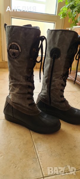 Високи до коляното, топли зимни ботуши за трекинг, лов, преходи и ежедневна употреба в града. Водоустойчиви, импрегнирана плътна естествена кожа в долната част, промазан водоотблъсващ текстил нагоре , противоплъзгащо ходило, с възможност за персонална регулация - с цип и връзки, N40.