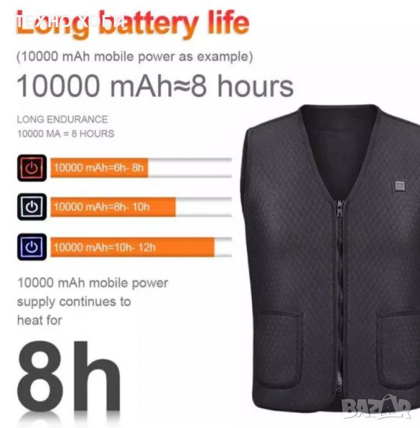 - 3 режима на работа: 40C 50C 60C градуса. Стабилна топлина и безопасно напрежение за тялото в продължение на няколко часа в зависимост от мощността на батерията.