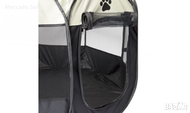 Паркът е идеален за повечето домашни любимци, пази ги на закрито и на открито, сгъва се и се изравнява за лесно съхранение и транспорт, има водоустойчива основа и лесен монтаж. Отваря се отгоре (кръгъл прозорец с диаметър 68 см) и прозорец с цип отстрани, за да се сложи и извади животното. Включени са илюстрирани инструкции за употреба. Подходящ за животни до 30 кг.